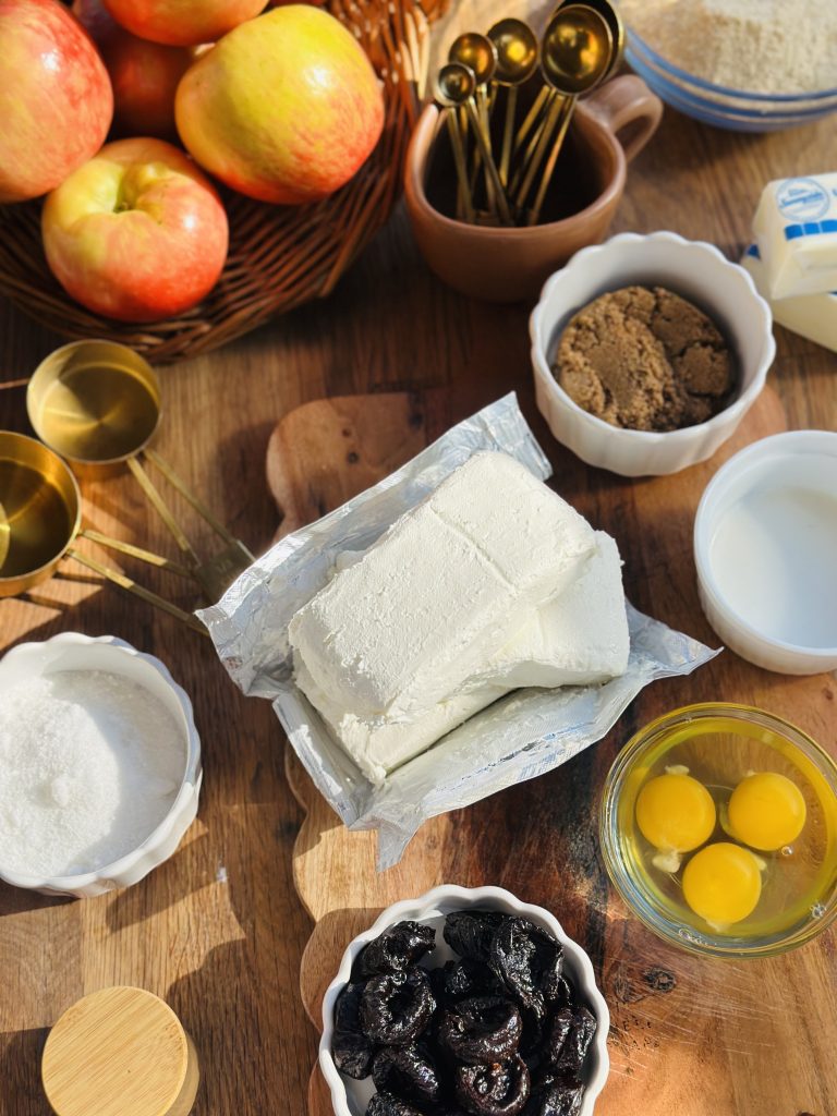 I hope this Apple and Prune Cheesecake makes it into your kitchen and warms up the holiday season, like it has on my end. Don’t be afraid to try new things it is amazing what a few changes and additions can make to our most loved desserts and dishes. I’ve found that adding new flavor combinations keeps me excited to be in the kitchen. Holiday favorites always have a special place on our plates, but trying something new keeps it fun and delicious!