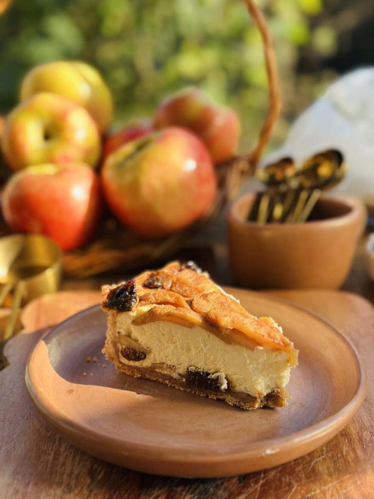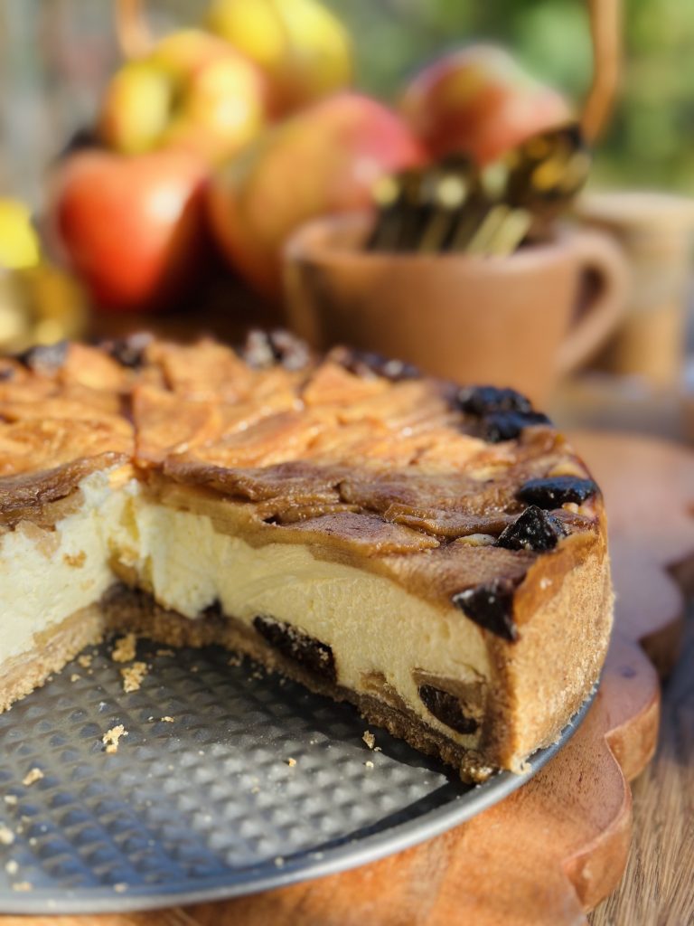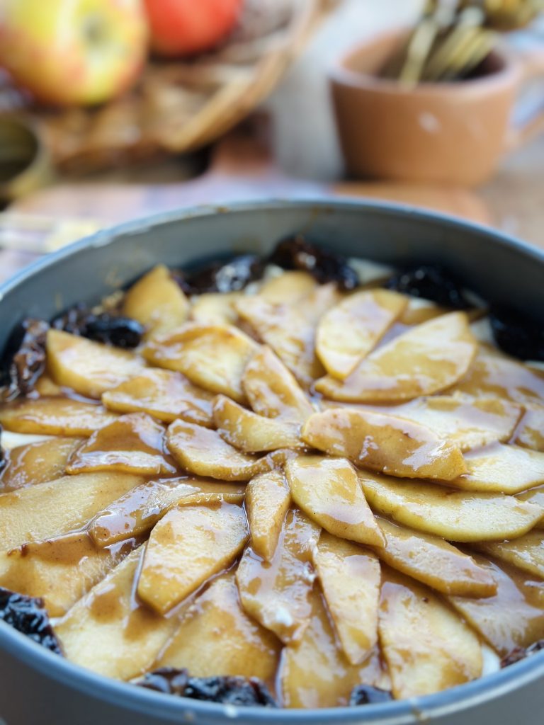 Apple and Prune Caramel Cheesecake