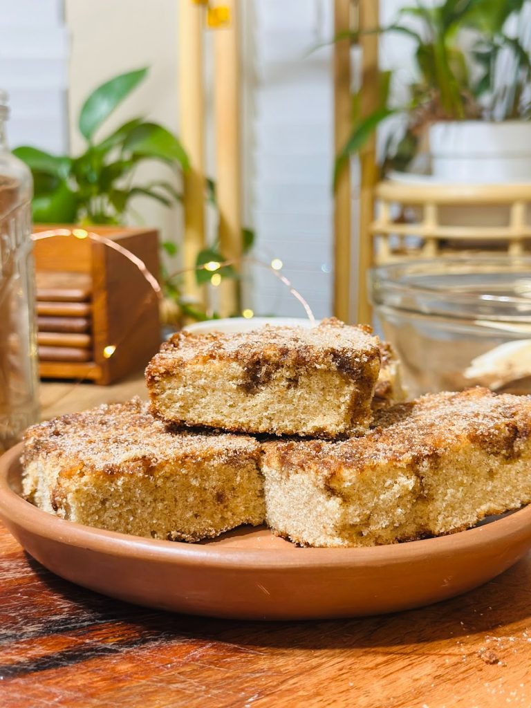 Dark Brown Sugar– Adds in sweetness as well as that depth of flavor from the molasses in the brown sugar. A mixture of cinnamon and dark brown sugar will coat the top and bottom layer of the batter and it will lightly seep into the batter giving it contrast and mimics a fried churro.