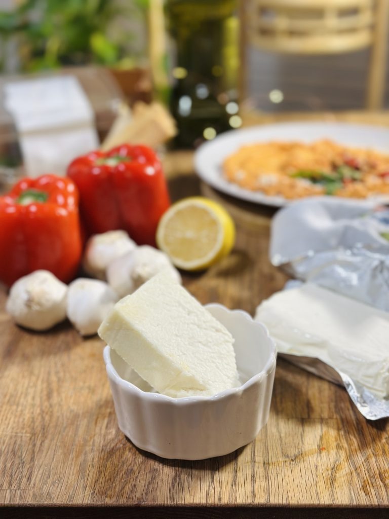 Lemon- Some much needed acidity for all the richness in this Roasted red pepper cotija dip.
